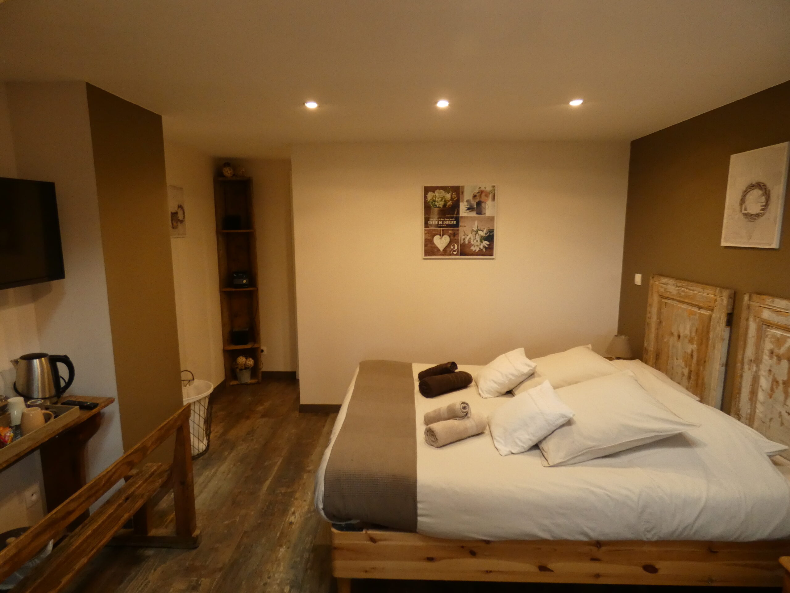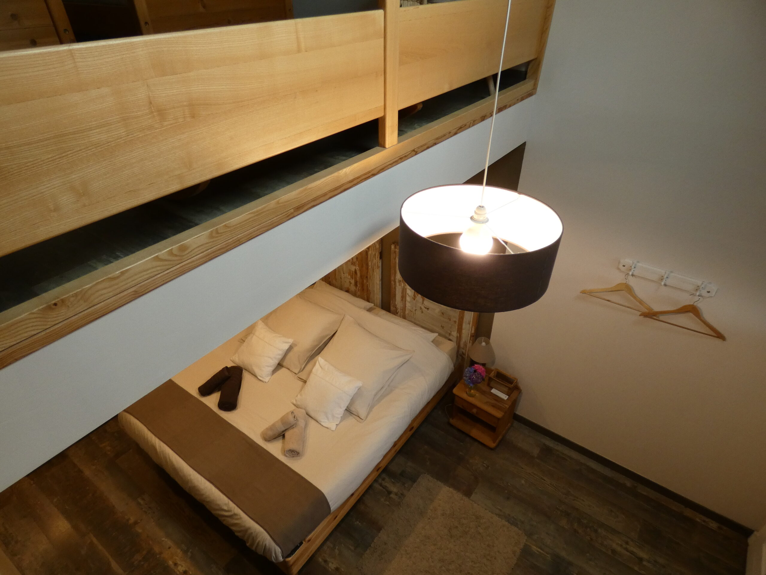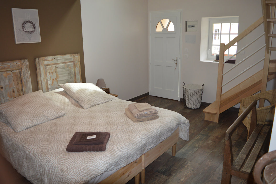 La chambre Colombe de 30m² peut accueillir jusqu’à 4 personnes, elle est aménagée en duplex et décorée avec soin.