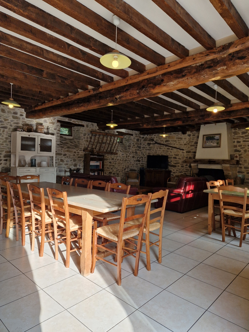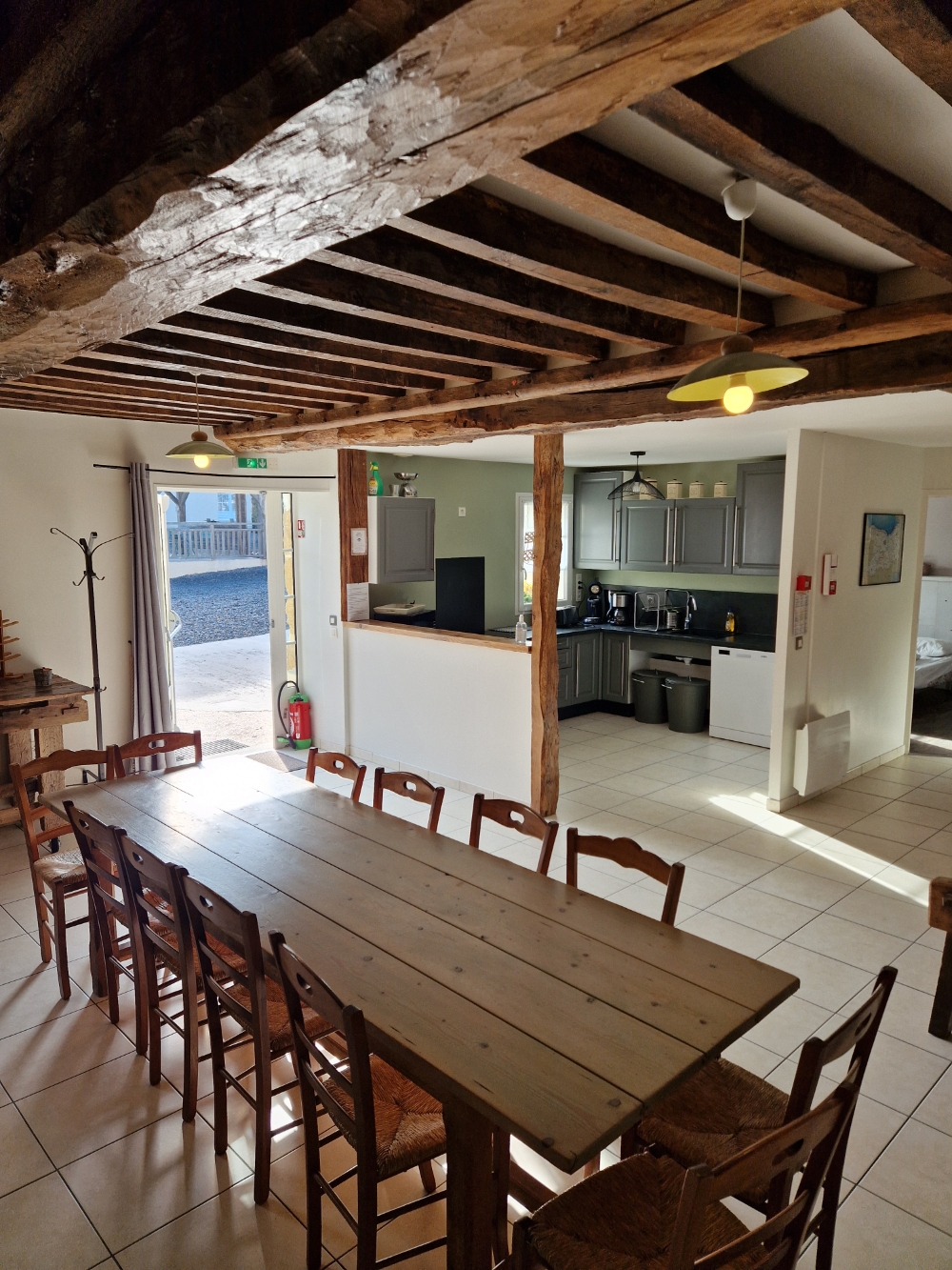Ce gîte très spacieux et lumineux est parfaitement adapté aux réunions de familles ou entre amis. La pièce principale comprend une cuisine américaine toute équipée ouverte sur un grand salon / salle à manger de 70 m². Une trentaine de personnes peuvent s’y retrouver pour diner et pourront se réchauffer autour de la cheminée.