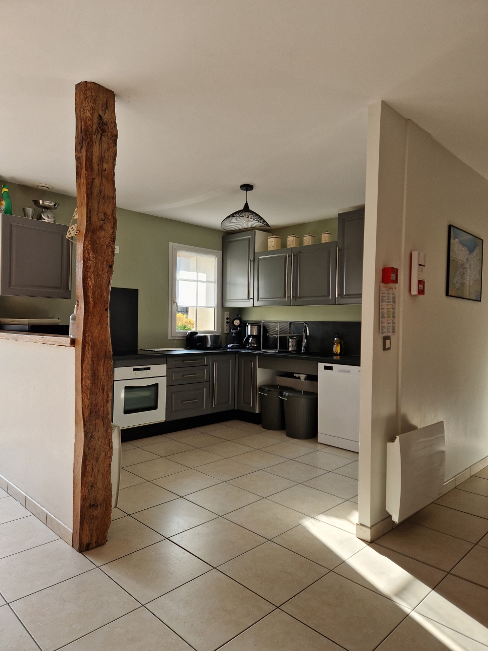 La cuisine américaine est entièrement équipée. Vous y trouverez toute la vaisselle nécessaire pour 40 personnes et profiterez de tous les équipements pour faciliter votre séjour : un four, un réfrigérateur, un micro-onde, cafetières, une bouilloire, un grille-pain, un lave-vaisselle, un lave-linge, un sèche-linge, télévision, lecteur DVD, WIFI, chaine HI FI, jeux de société.